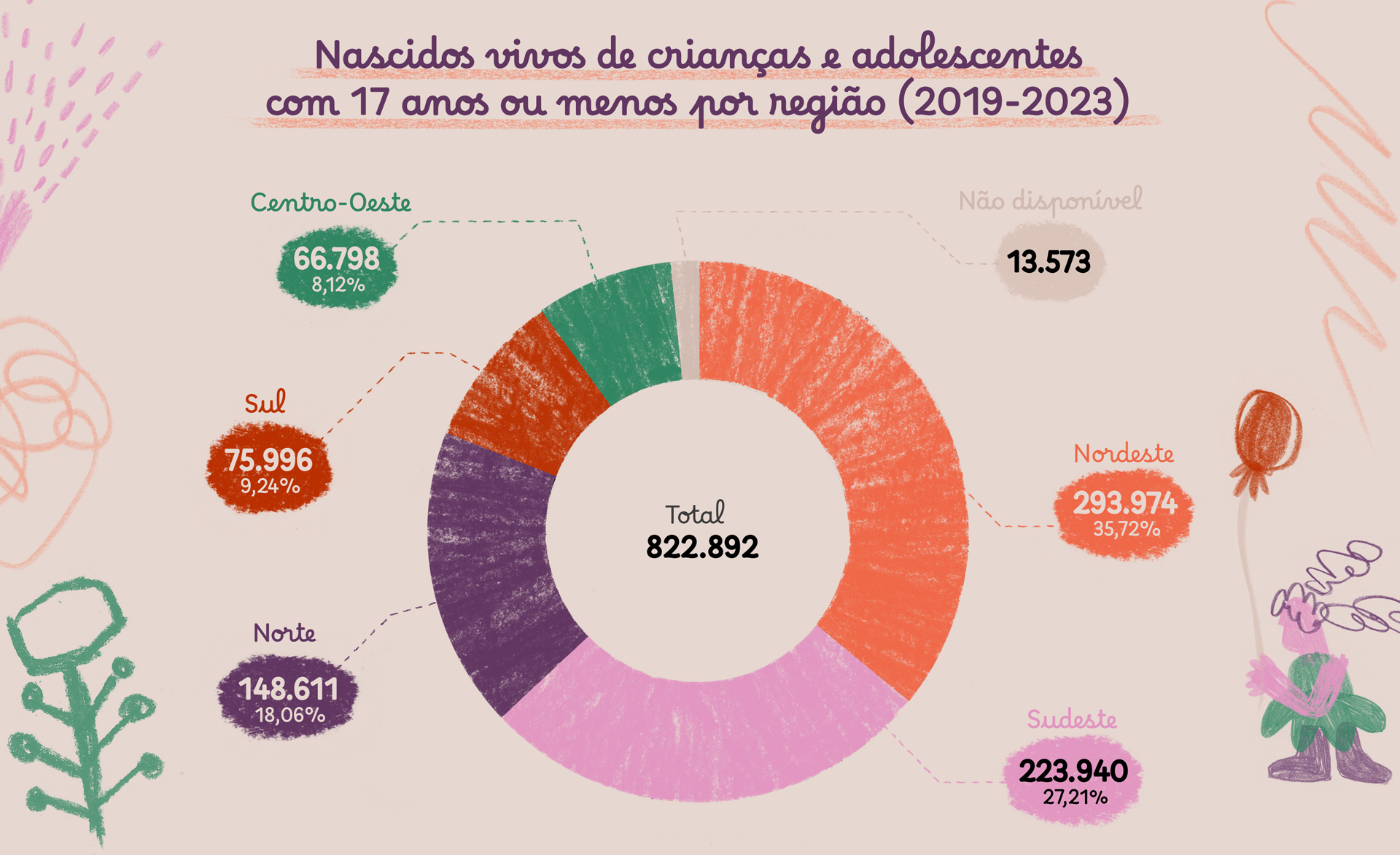 Entre 2019 e 2023, o Brasil registrou 822.892 nascidos vivos de crianças e adolescentes que tinham entre 8 e 17 anos, segundo o Sistema de Informações sobre Nascidos Vivos (SINASC).