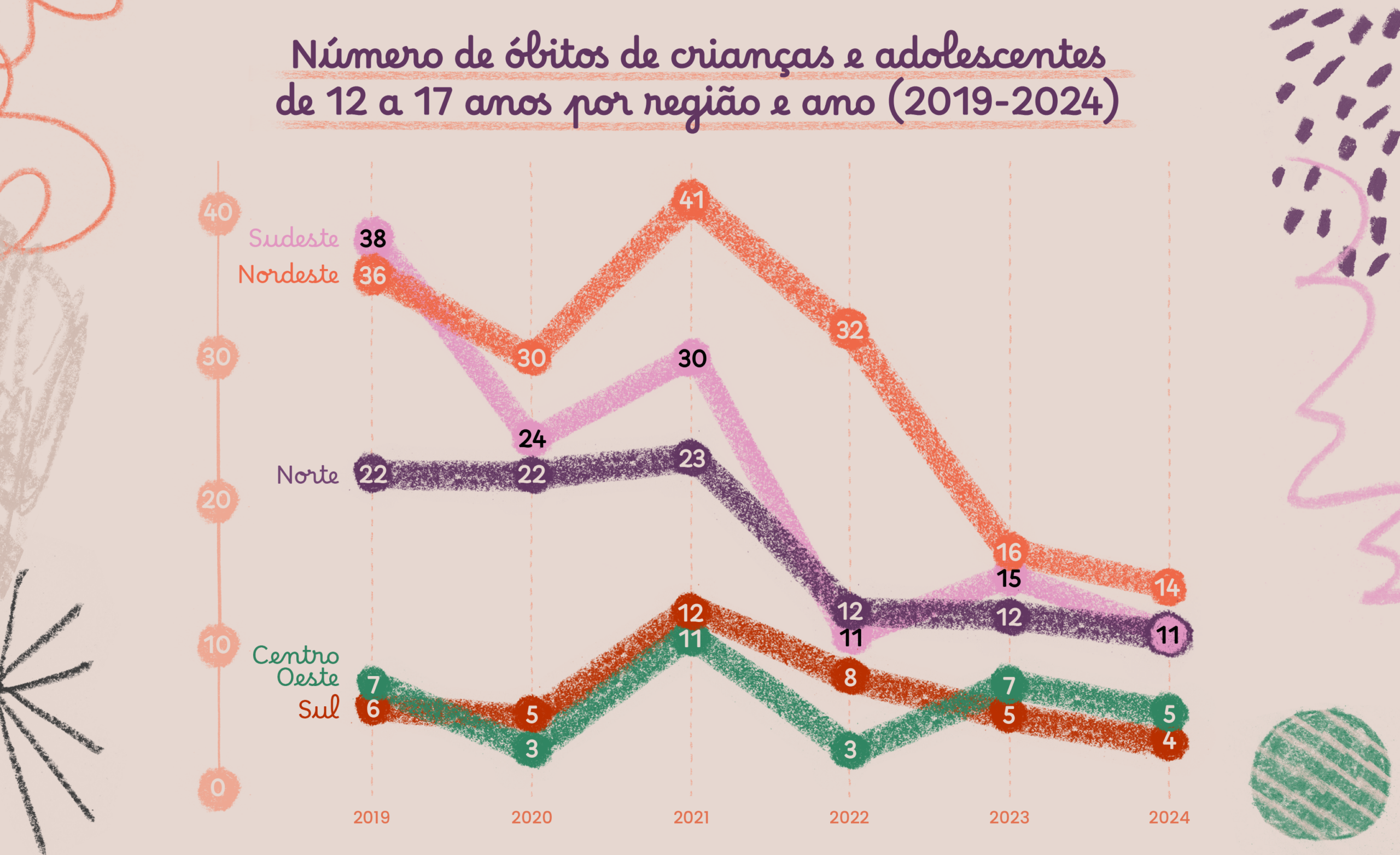 Entre 2019 e 2024, foram 529 mortes de crianças e adolescentes de 12 a 17 anos — a maioria entre 16 e 17 anos, mas também com registros a partir dos 12 anos. Essas gestações estão, em grande parte, ligadas a situações de vulnerabilidade extrema, como violência sexual e casamentos na infância.