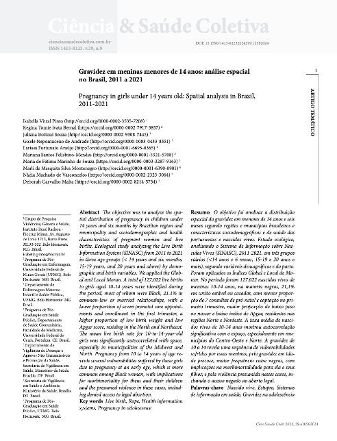 Isabella Vitral Pinto, et al. “Gravidez em meninas menores de 14 anos: análise espacial no Brasil, 2011 a 2021”: