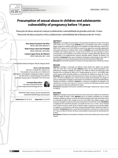 Ana Jéssica Cassimiro da Silva, et al. “Presunção do abuso sexual em crianças e adolescentes: vulnerabilidade da gravidez antes dos 14 anos”